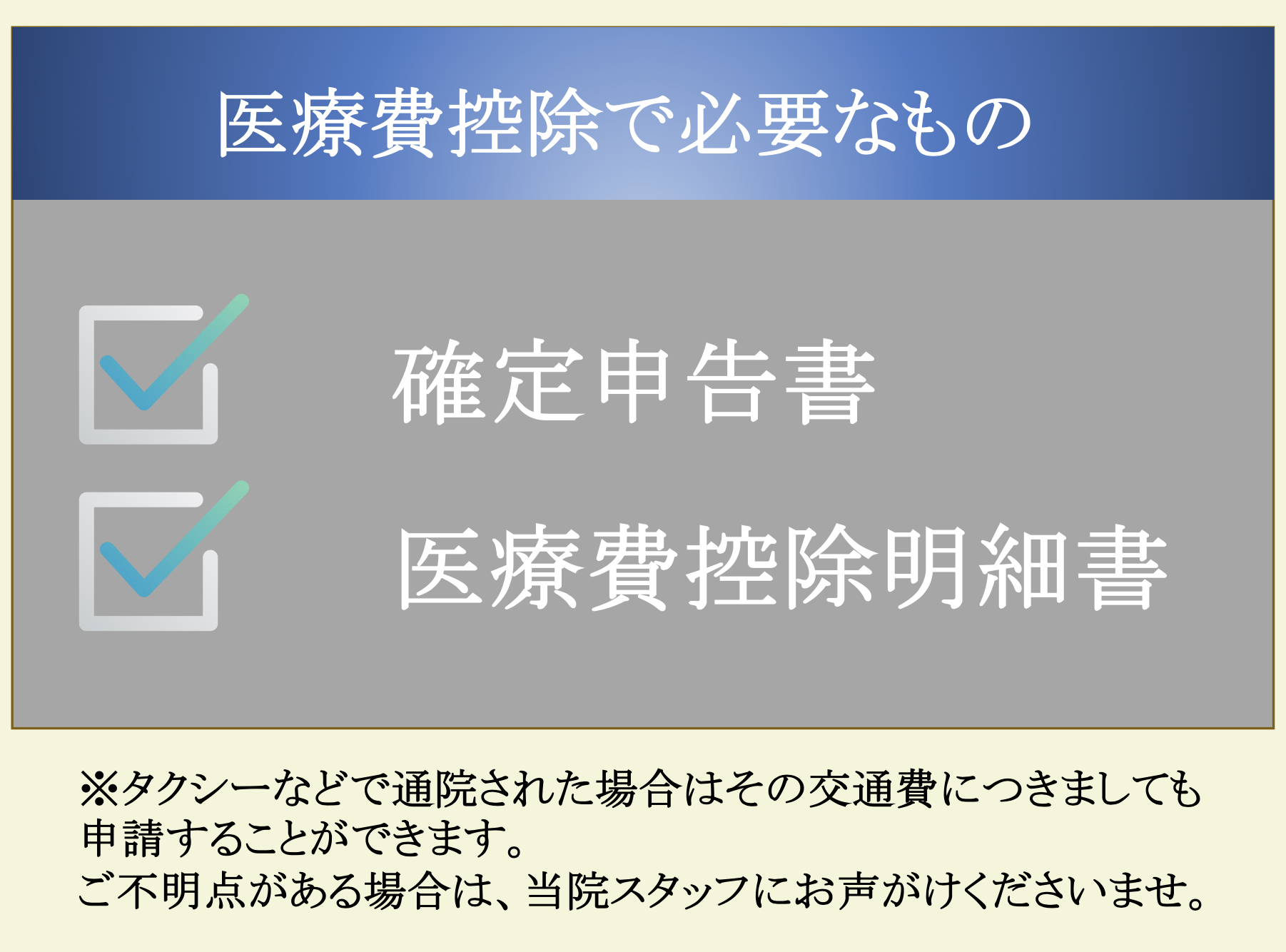 治療にかかった費用を申告することで、税金の一部が還付され、実質的に治療費を減らすことができます。