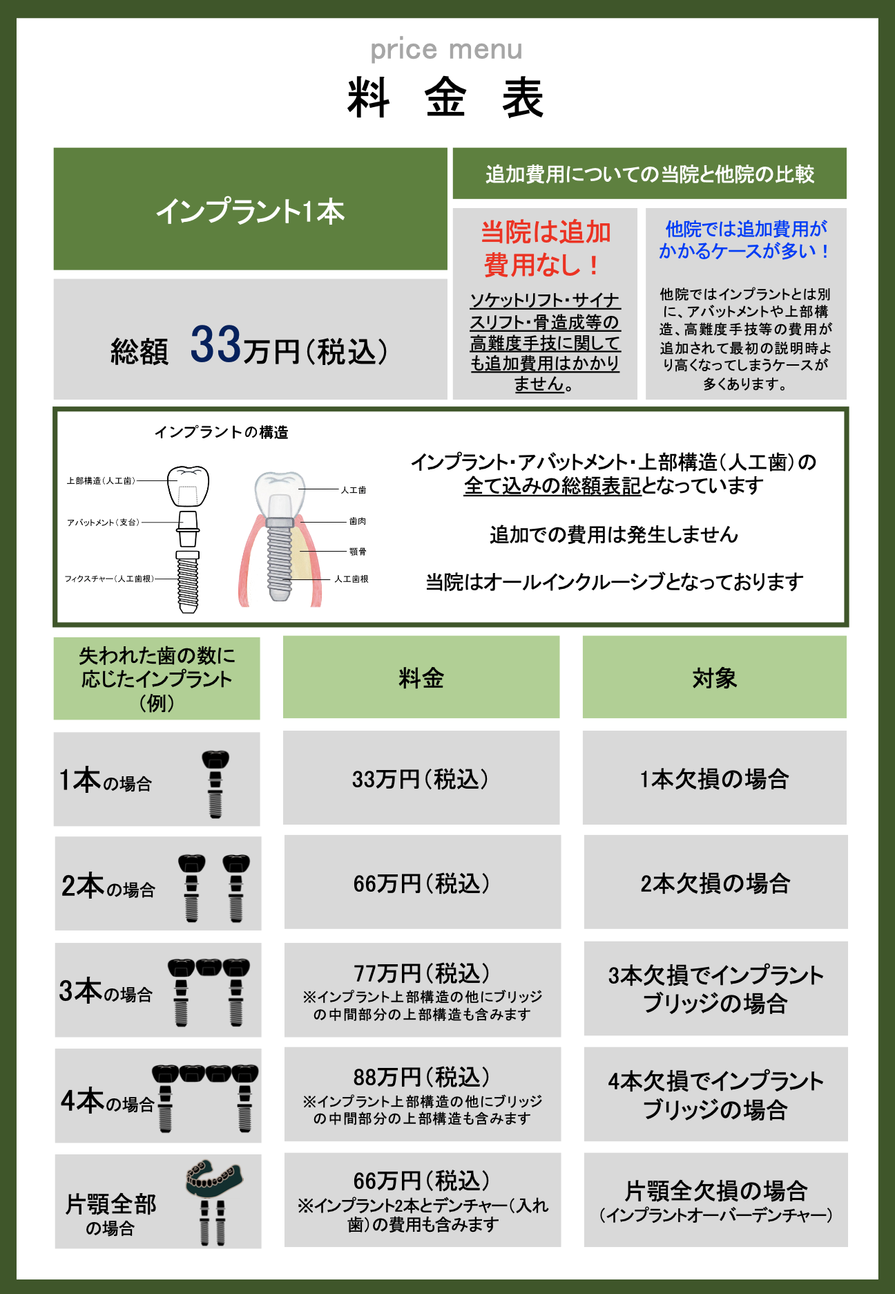 当院のインプラント治療の料金体系