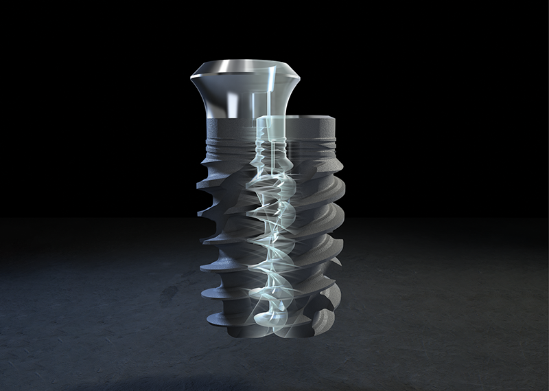 特殊な表面加工技術により骨との結合が早く、長期的に安定しやすいことが大きな特徴です。
